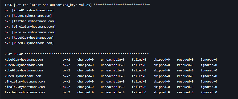 ansible-playbookcommand pointing to theupdate_authorized_keys_playbook.ymlfile fromssh-config- This connects to each host in the inventory file, updating the connected user’s