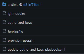ansible directory, this is a link back to the ansible Git repository. This “link” is controlled by the .gitmodules file.Jenkins