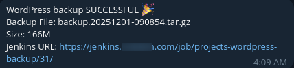 apprise -b "WordPress backup SUCCESSFUL 🎉